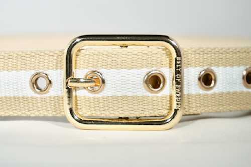Noret med sitt beige-vit-beiga nylon band, som på insidan omsluts av ett veganläderband för ökad stabilitet och förbättrad känsla, är det originella bältet som ger din klädsel lite extra karaktär och stil. Norets passform är skapad för att sitta alldeles utmärkt till lågmidjade såväl som högmidjade byxor. Helt enkelt det perfekta bältet för att piffa upp vilken outfit som helst.